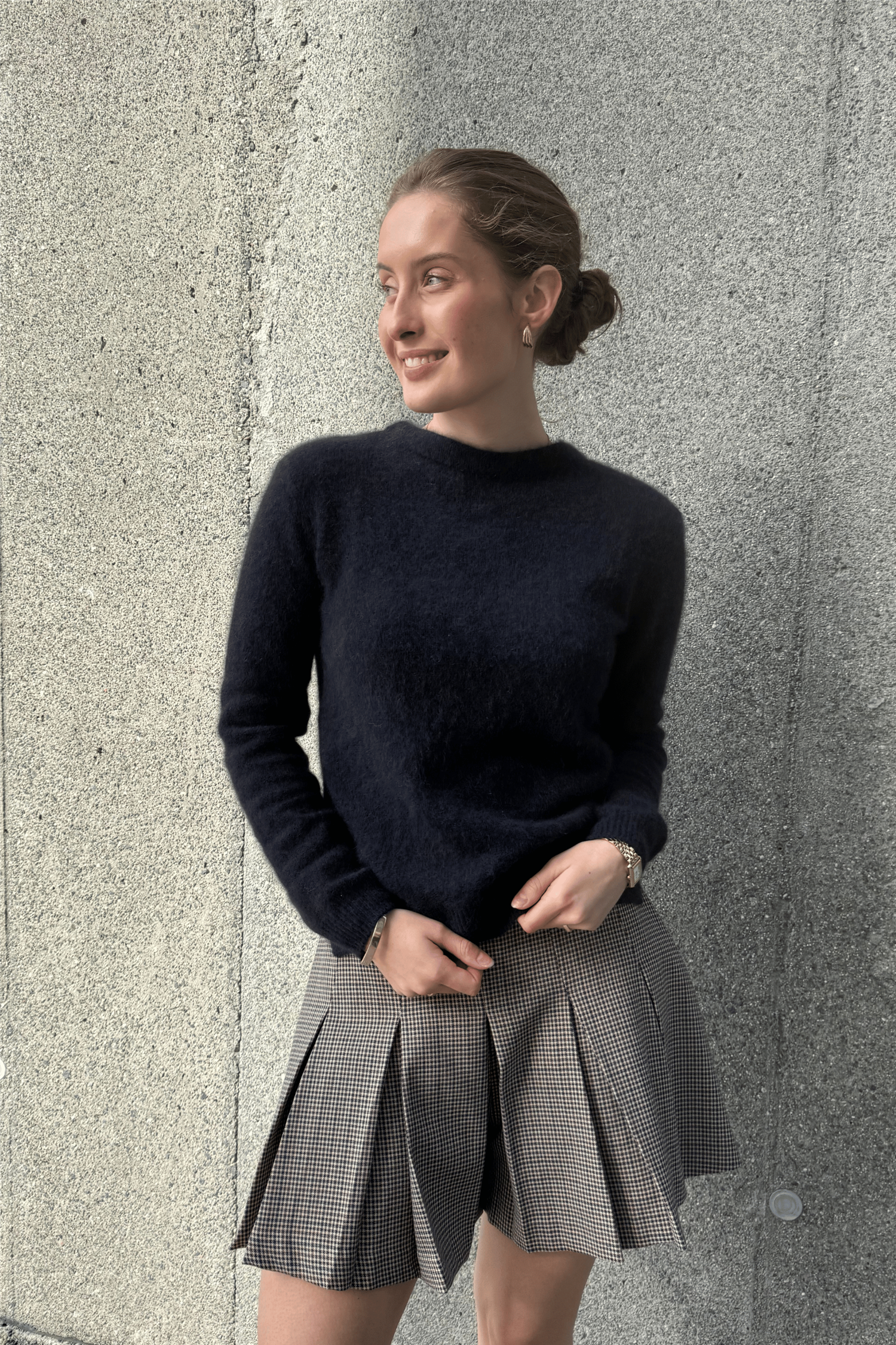 Joie fra Six Ámes. En klassisk genser med rund hals og lange ermer. Den har slanke ermer og en ribbedetalj ved halsen, nederst på kroppen og mansjetter. Joie har splitt i sidesømmene og ryggen er litt lengre enn foran. Den har en normal passform og er laget i et mykt, lett materiale med gode isolerende egenskaper, som holder deg varm i kaldt vær.