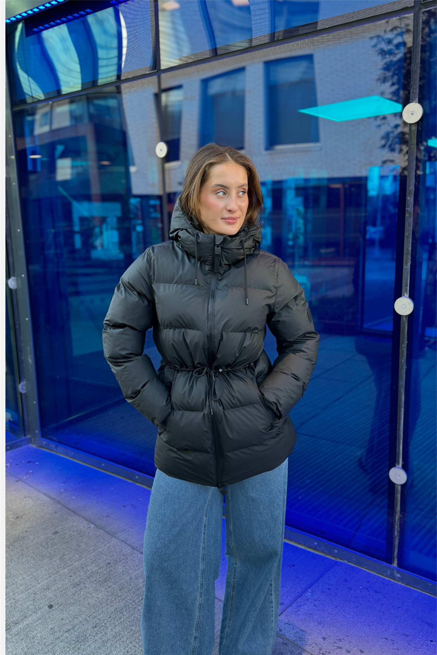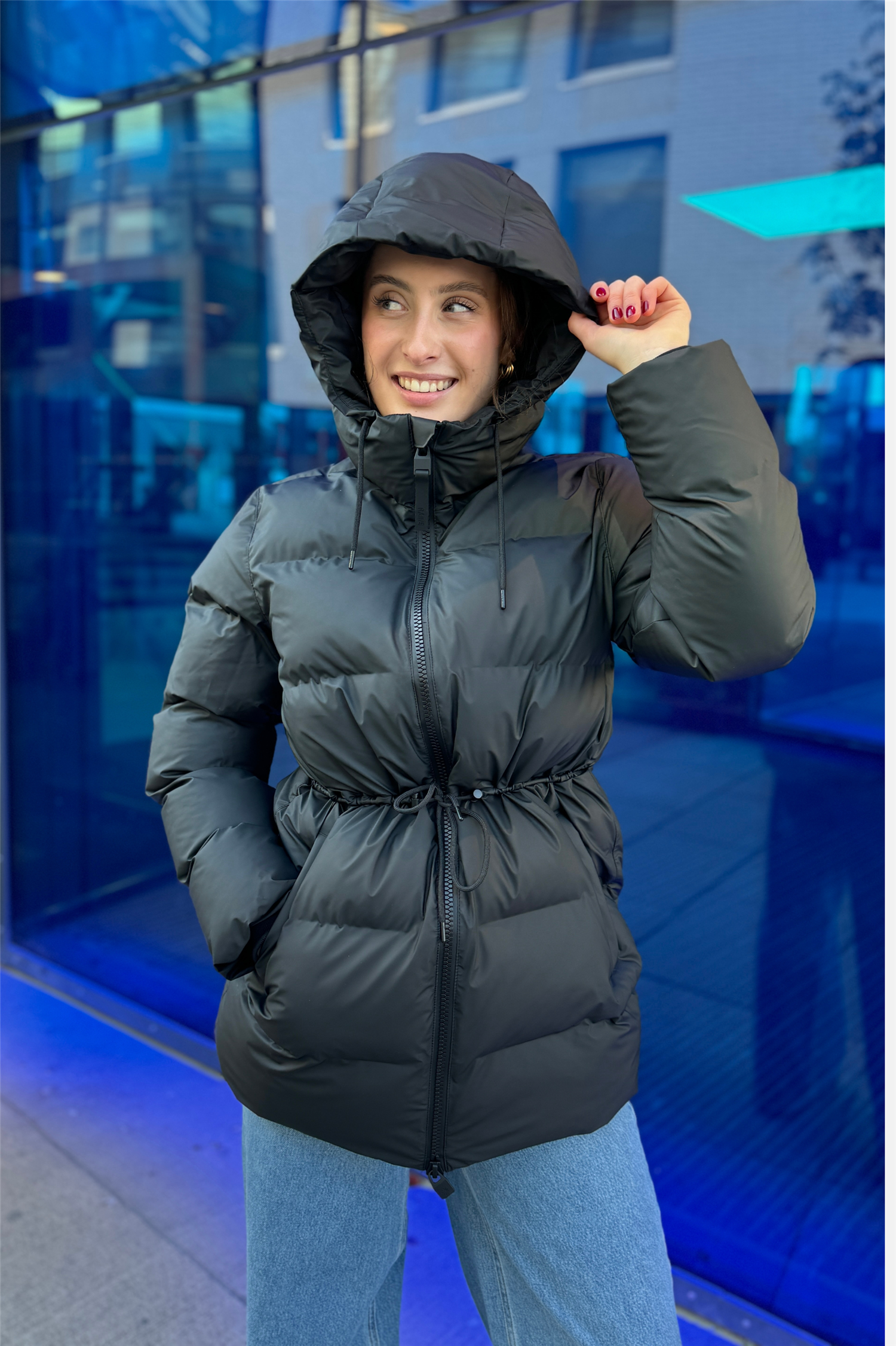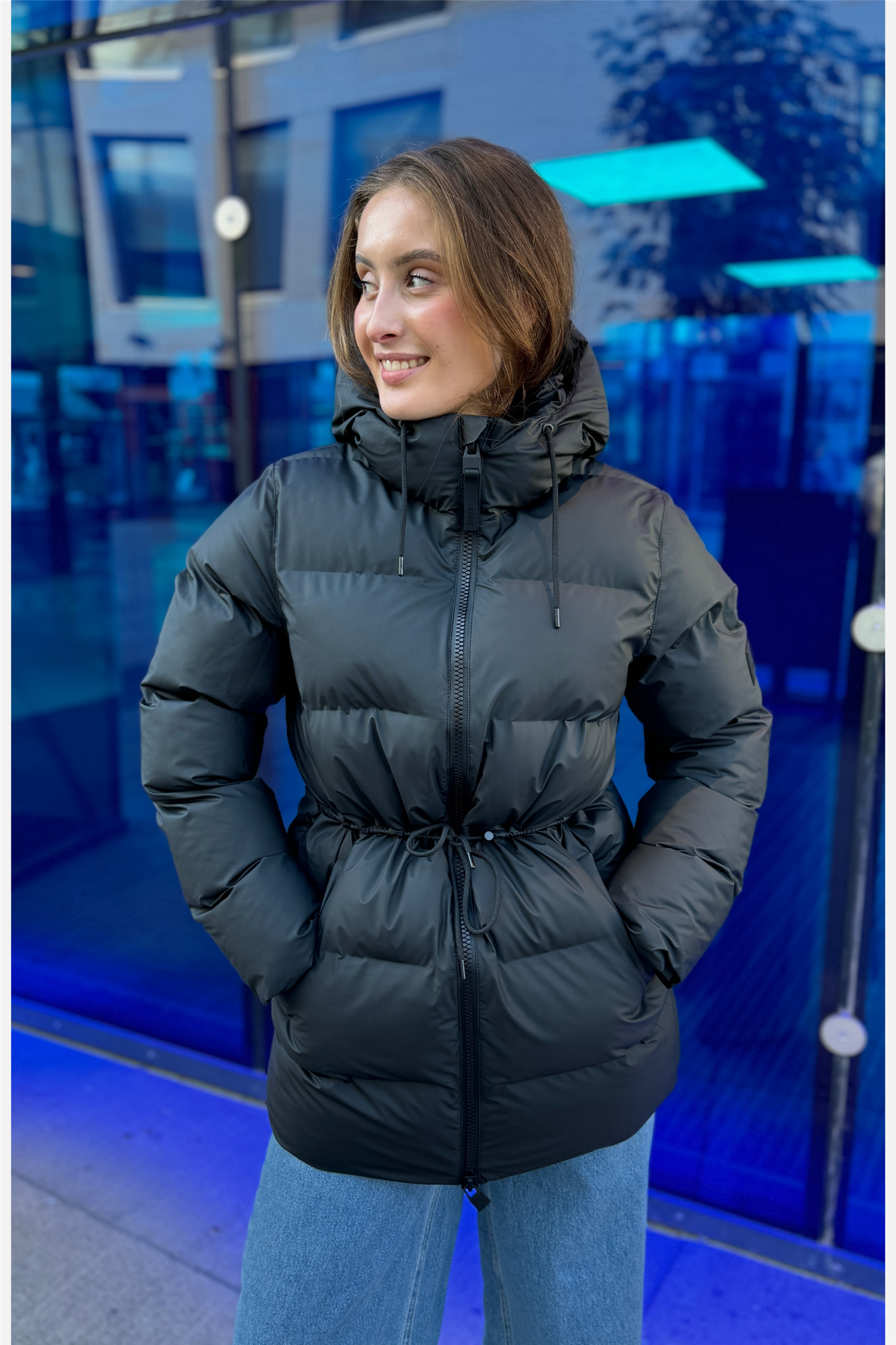 Alta Long Puffer String W Jacket W3T4 fra Rains. Alta Long Puffer String W Jacket W3T4 er en vanntett vinterjakke designet for å gi optimal beskyttelse og komfort i kaldt vær. Denne vinterjakken kombinerer en elegant silhuett med en moderne puffer-estetikk, og er utstyrt med signatur PU-stoff som gir en vanntett barriere mot lett regn. Med snøring i midjen for en mer formet passform, er den laget for både stil og funksjonalitet. Jakken har en isolert hette med snorjustering, som holder deg varm og komfortabel selv i de kaldeste klimaene.
