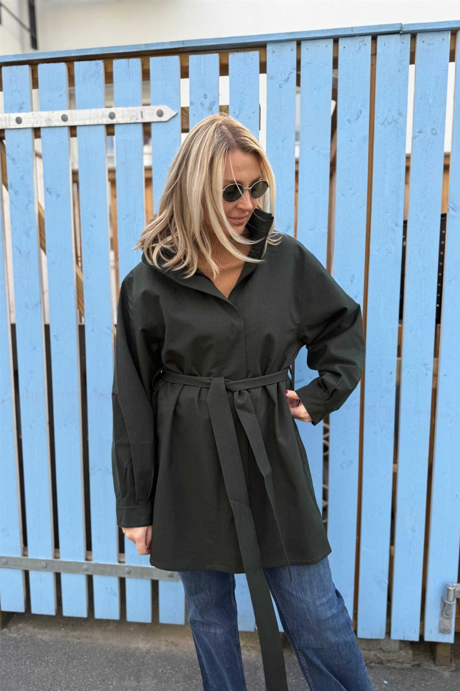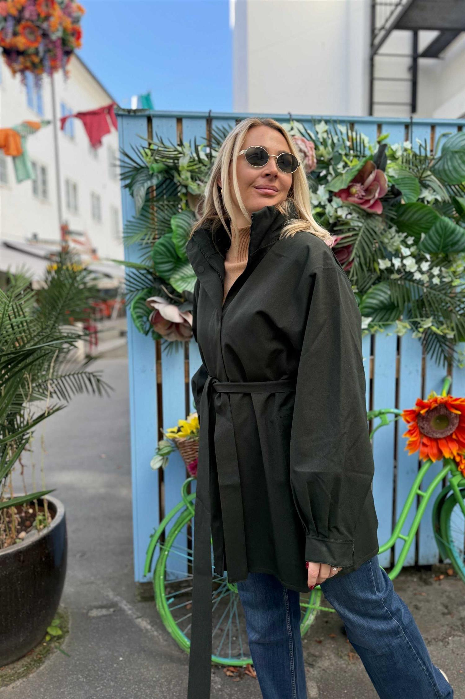 Rossby Coat fra BRGN er en feminin og vanntett regnjakke laget i resirkulert stoff. Regnfrakken har ballongermer og belte i midjen, som får silhuetten din til å skinne. Skjult hette i krage.