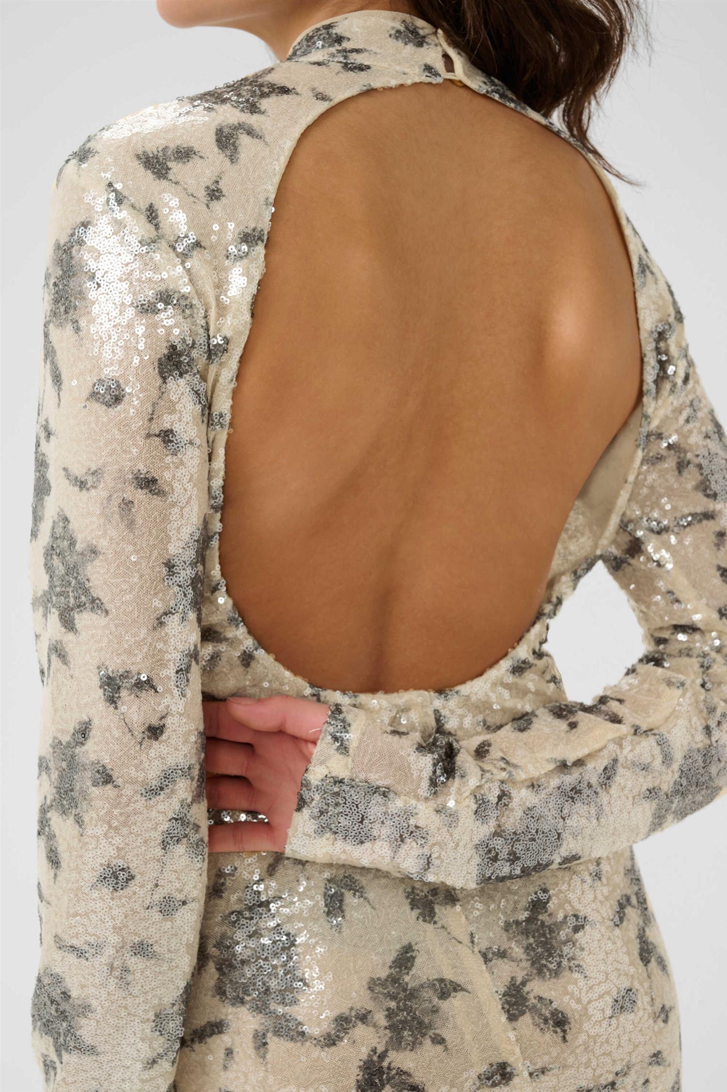 GZsveda Paljettkjole fra Gestuz er en elegant og glamorøs paljettkjole som virkelig skiller seg ut. Den har et kroppsnært snitt med lange ermer, høy hals og en vakker åpen rygg som gir et feminint og sofistikert uttrykk. Hele kjolen er dekket av glitrende paljetter som fanger lyset og skaper en luksuriøs look – perfekt som festkjole, nyttårskjole eller maxikjoletil spesielle anledninger. En tidløs Gestuz kjole som får deg til å skinne!