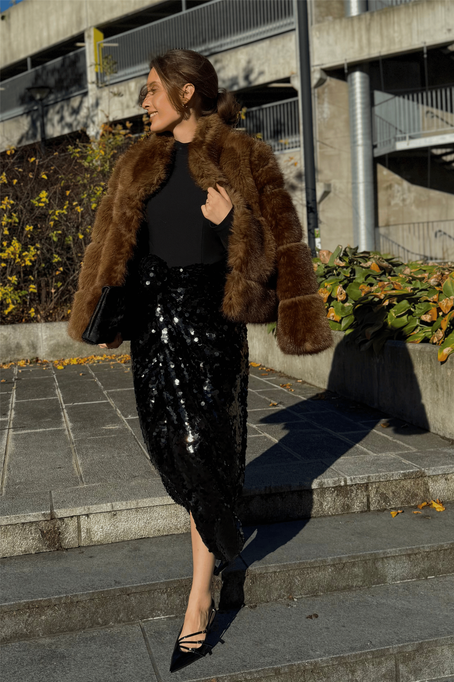 Knotted Midi Dress fra Rotate er en sort midikjole som virkelig skiller seg ut. Med lange ermer og høy hals gir den et sofistikert uttrykk, mens skjørtet i glitrende paljetter skaper en effekt av å være knytt rundt hoften – en detalj som gir kjolen både bevegelse og karakter. Knotted Midi Dress fra Rotate er perfekt til høstens festligheter, enten det er julebord eller nyttårsfeiring.