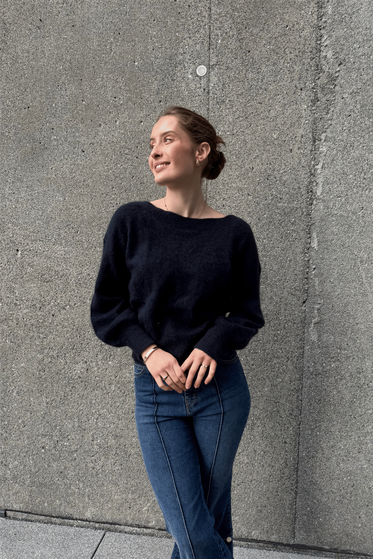 Malou Sweater fra Six Ámes er en løstsittende genser med bred hals og lange ermer som gir et avslappet, men likevel elegant uttrykk. Den har fine ribbestrikkede detaljer i nakken, nederst på genseren og på håndleddene, og er laget i mykt vaskebjørnhår som holder deg god og varm. Denne bestselgeren blir bare bedre med tiden, og er et allsidig plagg du kan bruke sesong etter sesong. Perfekt å style med både jeans og skjørt for en uanstrengt og chic look.