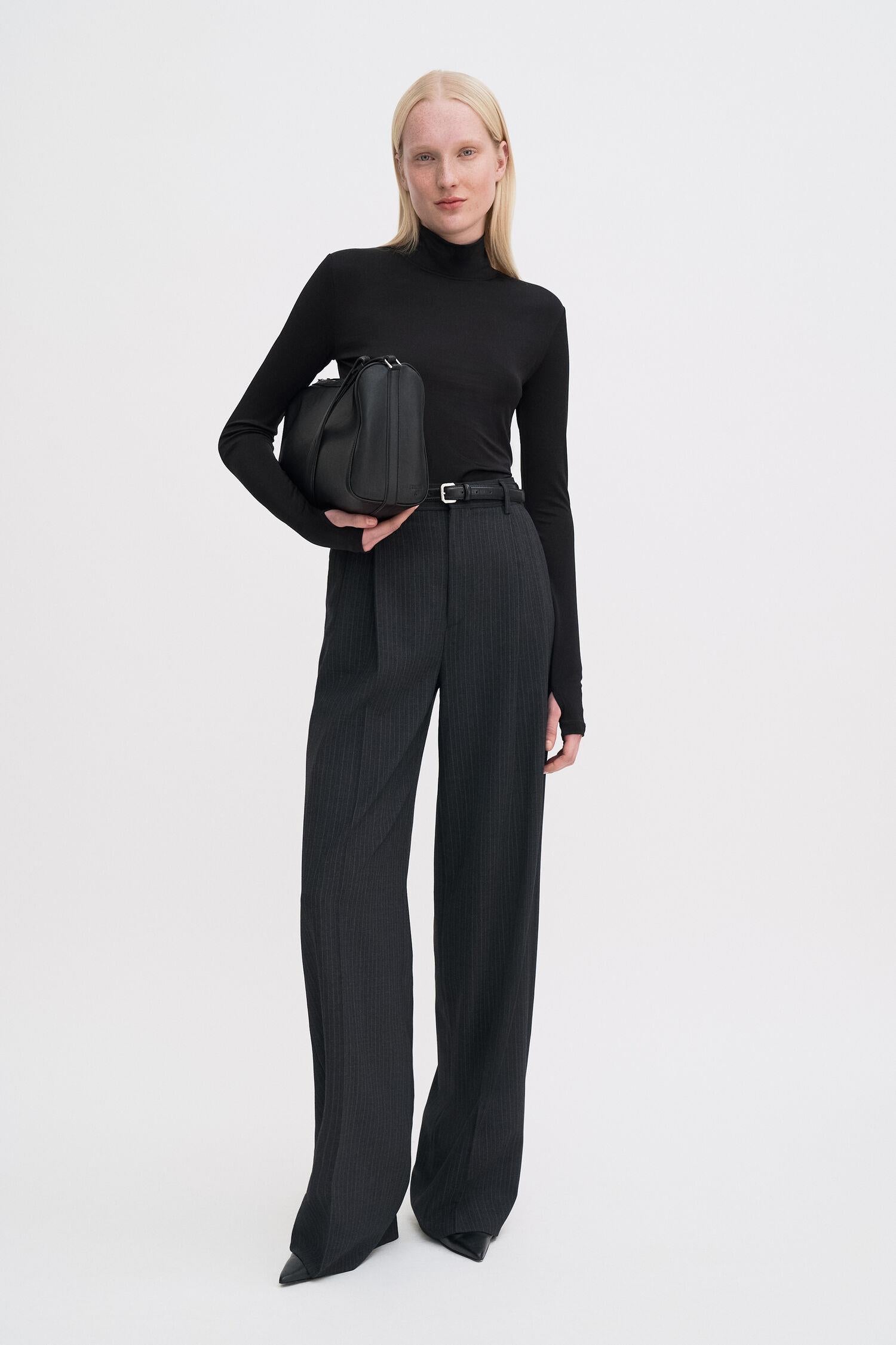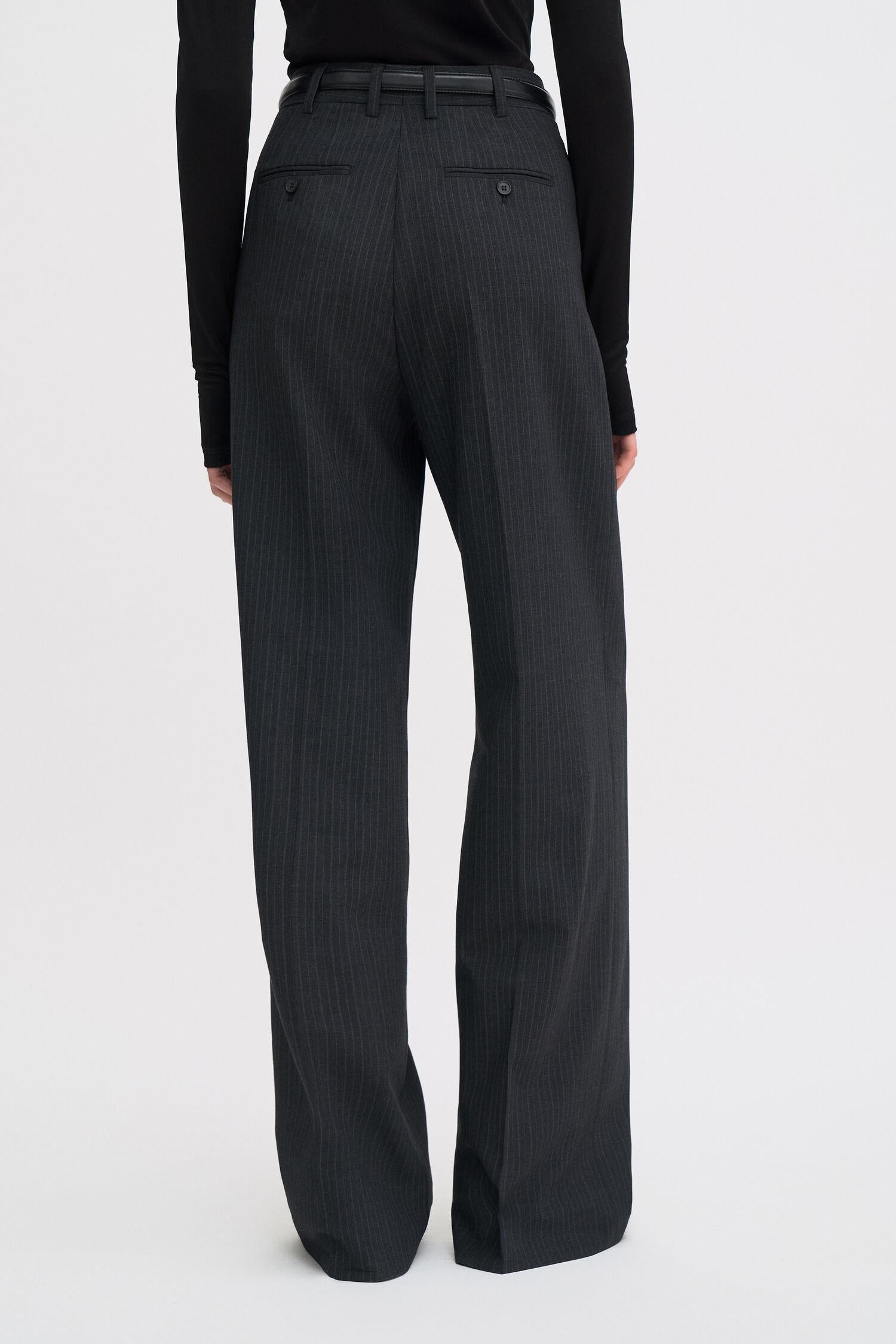 Darcey Pinstripe Trousers fra Filippa K er en klassisk dressbukse med vide en og pressede folder som gir et elegant uttrykk. Buksen har legg foran, skrå sidelommer, jetted baklommer og en forhåndsformet linning for optimal passform. Med sitt tidløse pinstripe-mønster er Darcey Pinstripe Trousers fra Filippa K perfekt til kontorbruk eller som en del av en skreddersydd høstlook – style med en skjorte eller en myk strikk for en balansert silhuett.