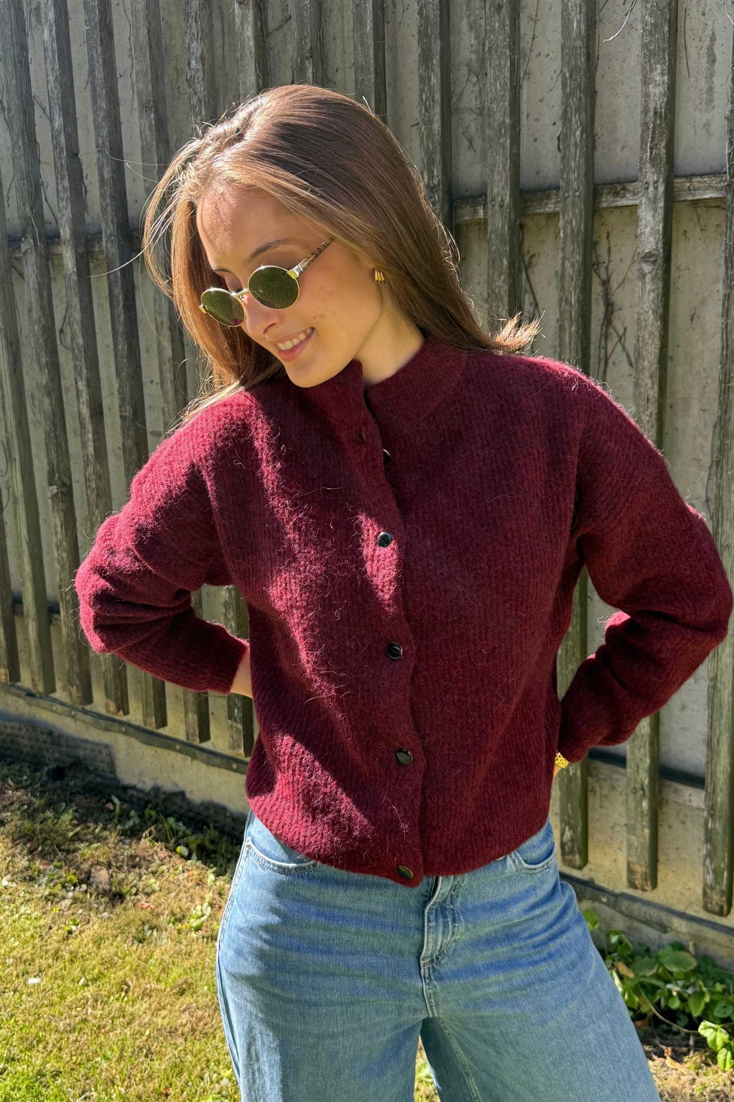 AlphaGZ short cardigan fra Gestuz. En bestselger fra Gestuz, designet med en moderne boxy passform som gir et avslappet, men sofistikert uttrykk. De elegante knappene i sort med gullkant tilfører et eksklusivt preg, noe som gjør AlphaGZ short cardigan perfekt til både hverdag og kontorbruk. Style med alt fra jeans til skjørt for en allsidig look.