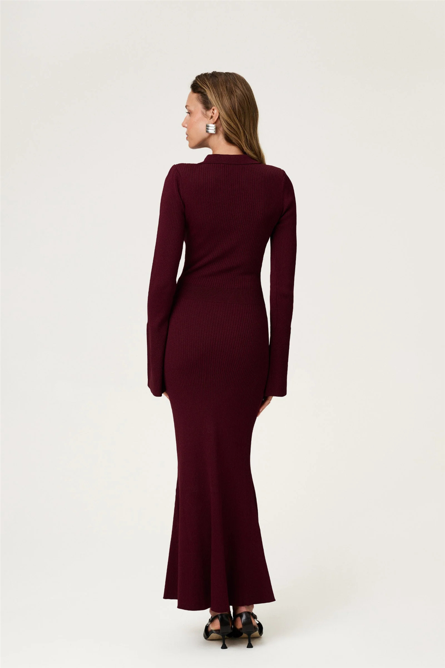 Kjolen har lange ermer med brede mansjetter som gir et skreddersydd uttrykk. Den lette strikkede kvaliteten faller naturlig mot kroppen og gjør denne kjolen like behagelig som den er chic.
