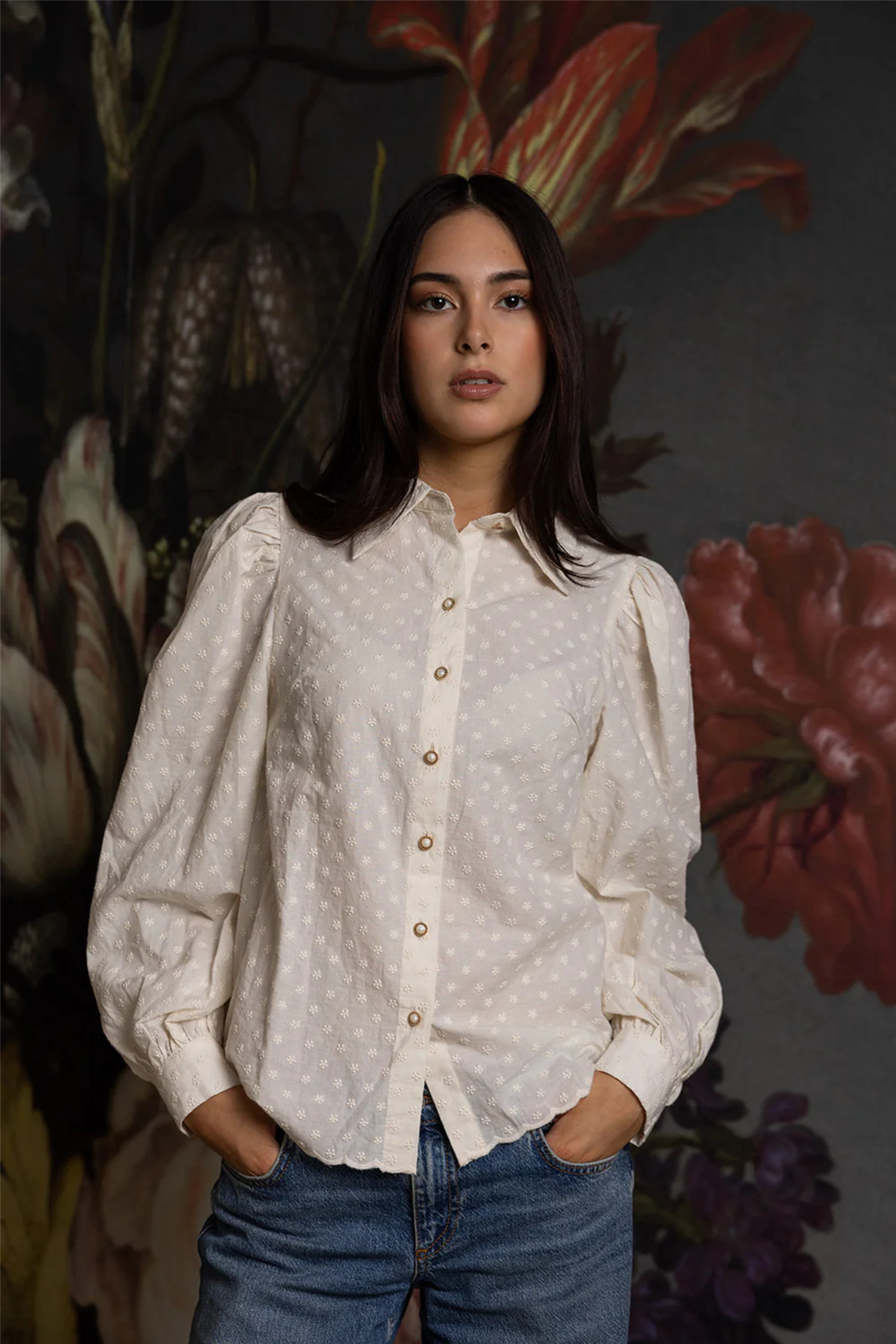 En lekker bluse som kan gå til både bukse, jeans og skjørt er en sikker vinner å ha i klesskapet. Blusen som kan bli tatt frem år etter år og som går til alt! Der er vår Elly bluse en sikker vinner. Kommer også i sort .