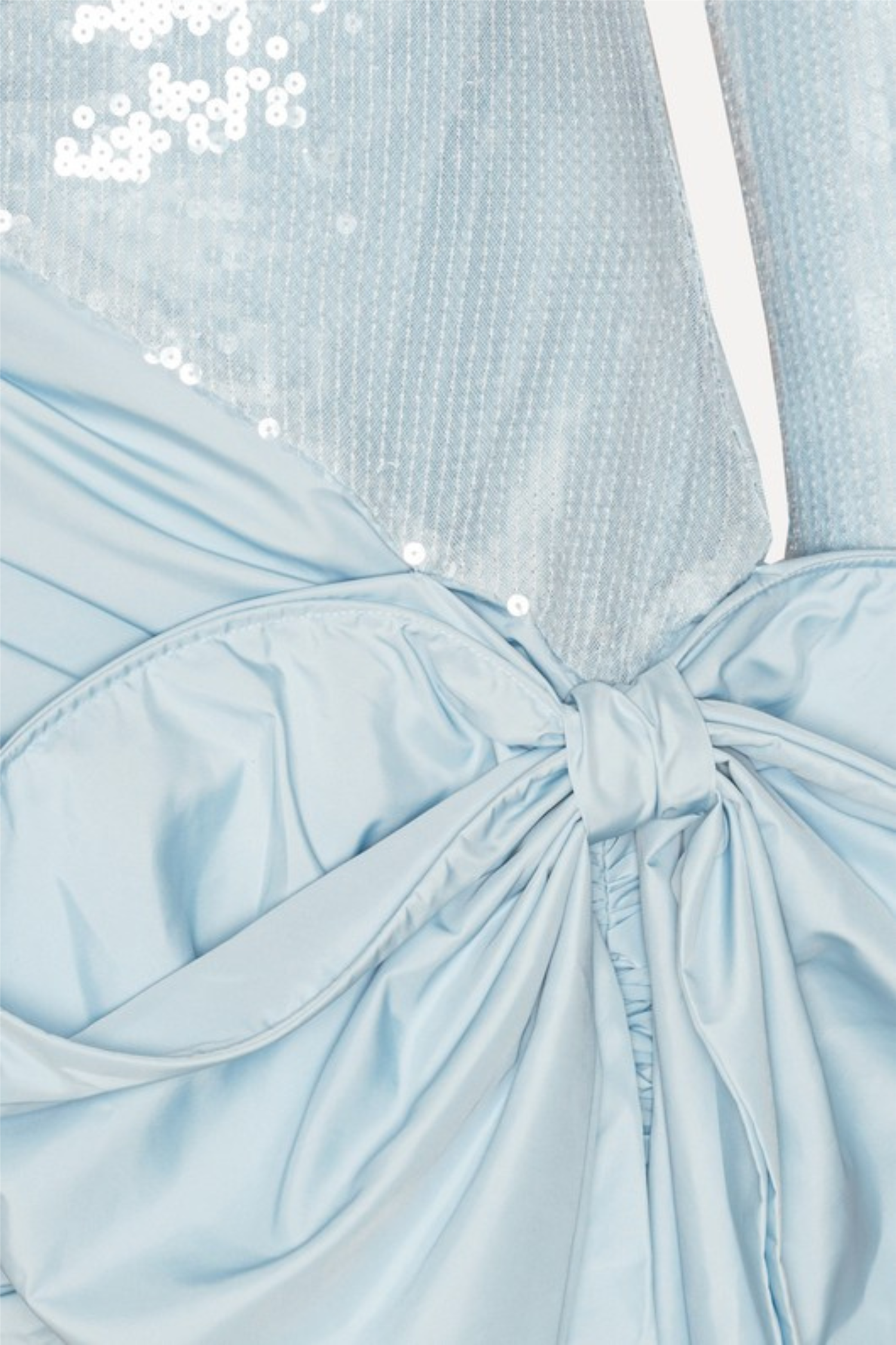Sequins Bow Mini Dress er en festkjole som virkelig skiller seg ut. Kjolen er dekket i paljetter som gir masse shine, samtidig som den store sløyfedetaljen foran skaper et dramatisk og lekent uttrykk. Sequins Bow Mini Dress har lange ermer og en smal passform som balanserer den korte lengden på en fin måte. Kjolen lukkes med glidelås for en pen og enkel finish. Sequins Bow Mini Dress fra Rotate er den perfekte festkjolen til bursdag, sommerfest eller andre kvelder der du vil synes litt ekstra. Rotate har gjort Sequins Bow Mini Dress til et statement-plagg du garantert får oppmerksomhet i.