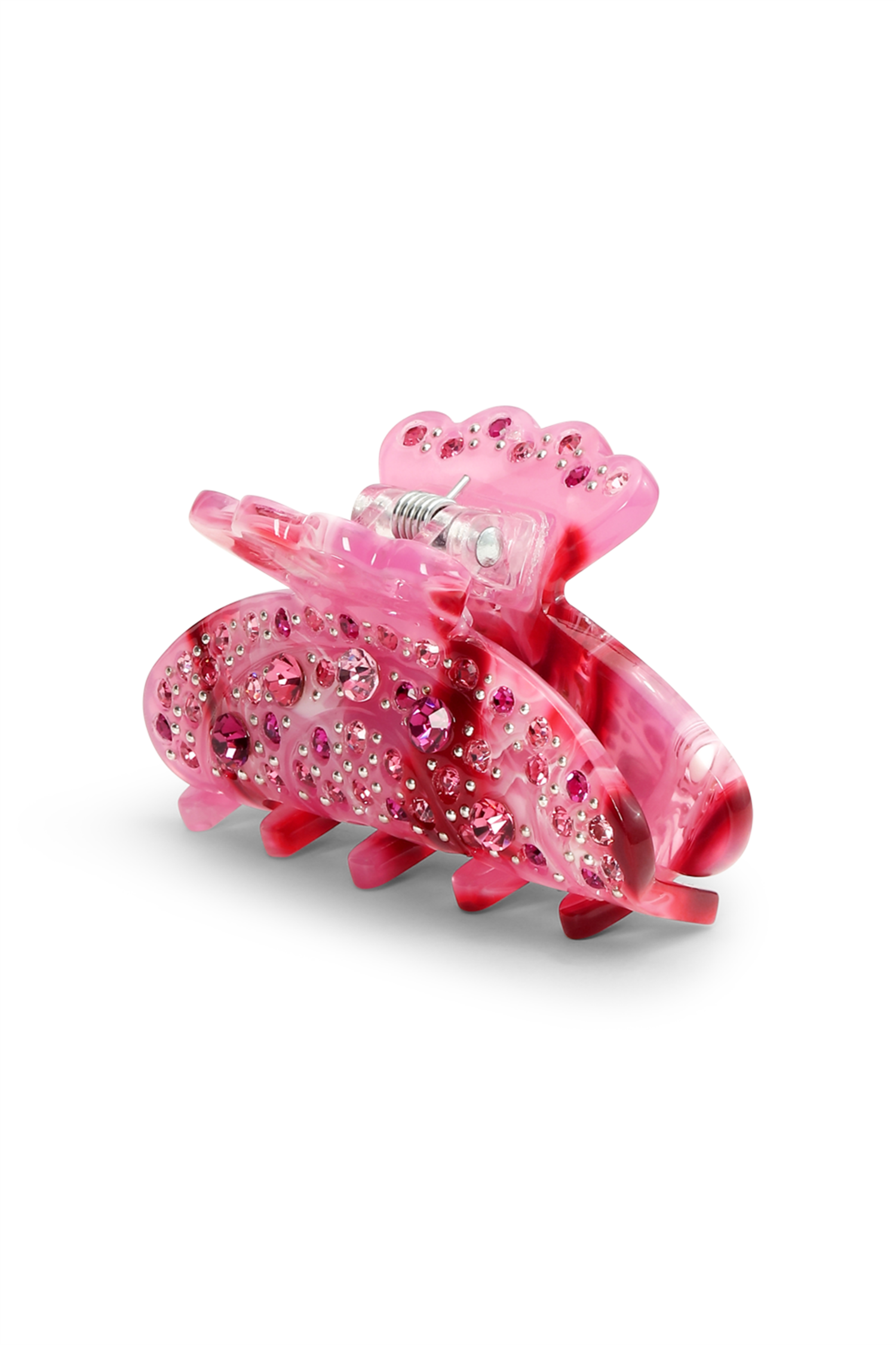En liten, men glamorøs hårklemme som setter prikken over i-en på frisyren din. Helen Pink Marble Mini fra Sui Ava kombinerer rosa marmorert design med skinnende krystaller som gir en feminin og leken look. Perfekt til både hverdag og fest – og ideell når du ønsker å tilføre litt ekstra sparkle i hverdagen.