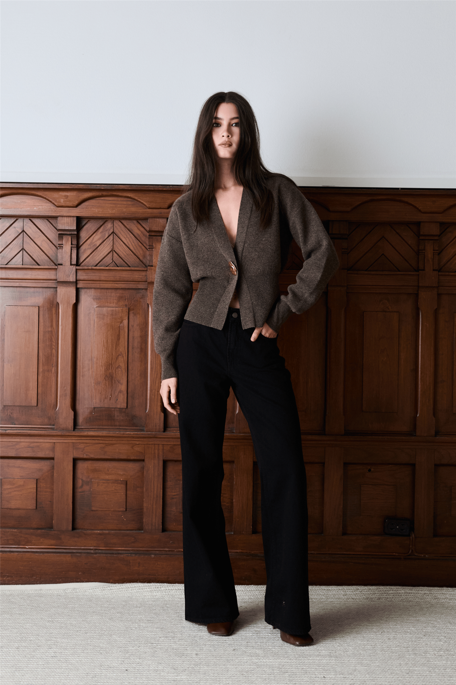 Vesper Merino Cardigan fra Iben er en luksuriøs cardigan i brun melange laget av myk merinoull. Et klassisk plagg som holder deg varm og stilig hele sesongen. Perfekt både over kjoler og sammen med jeans.