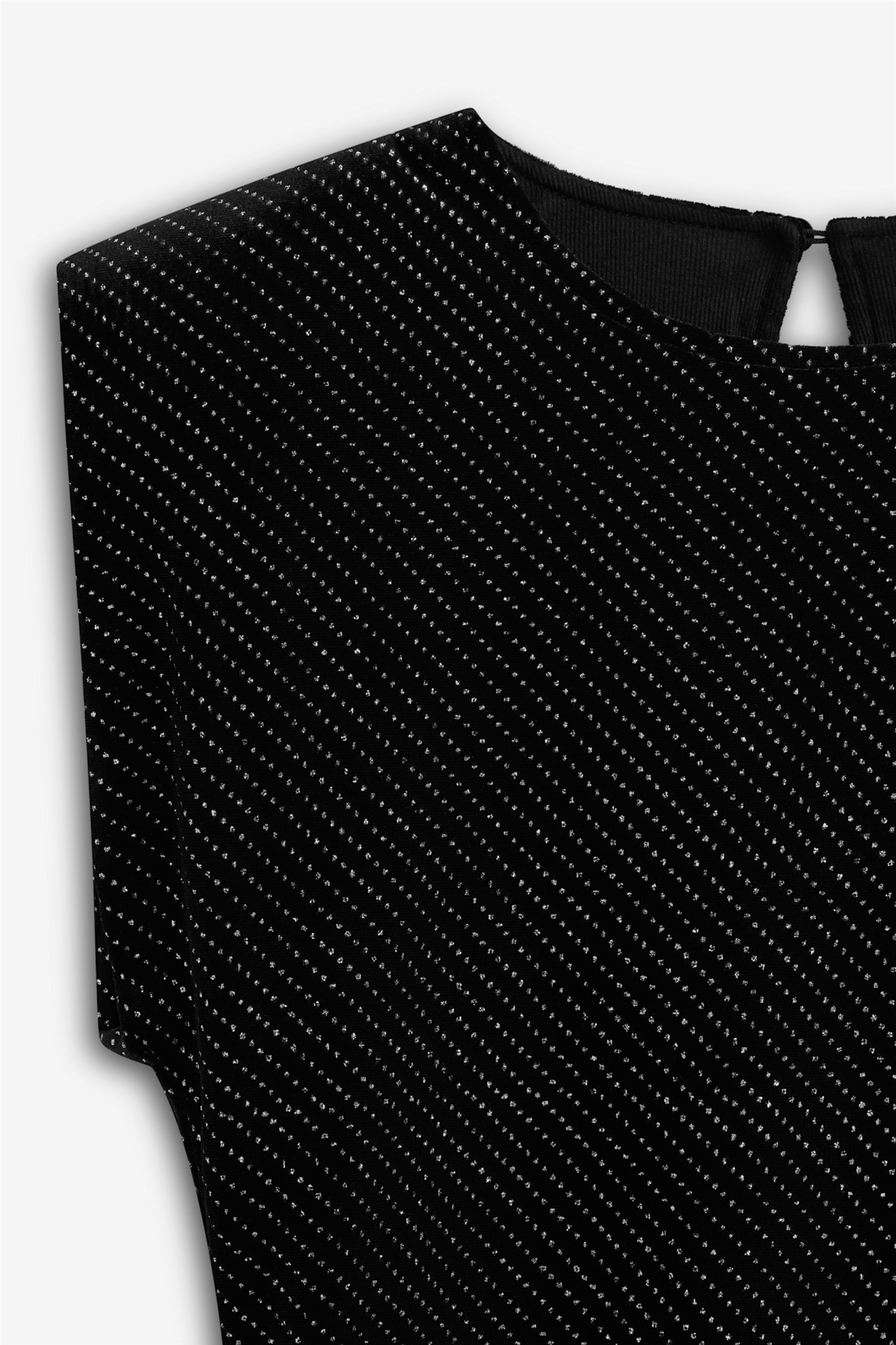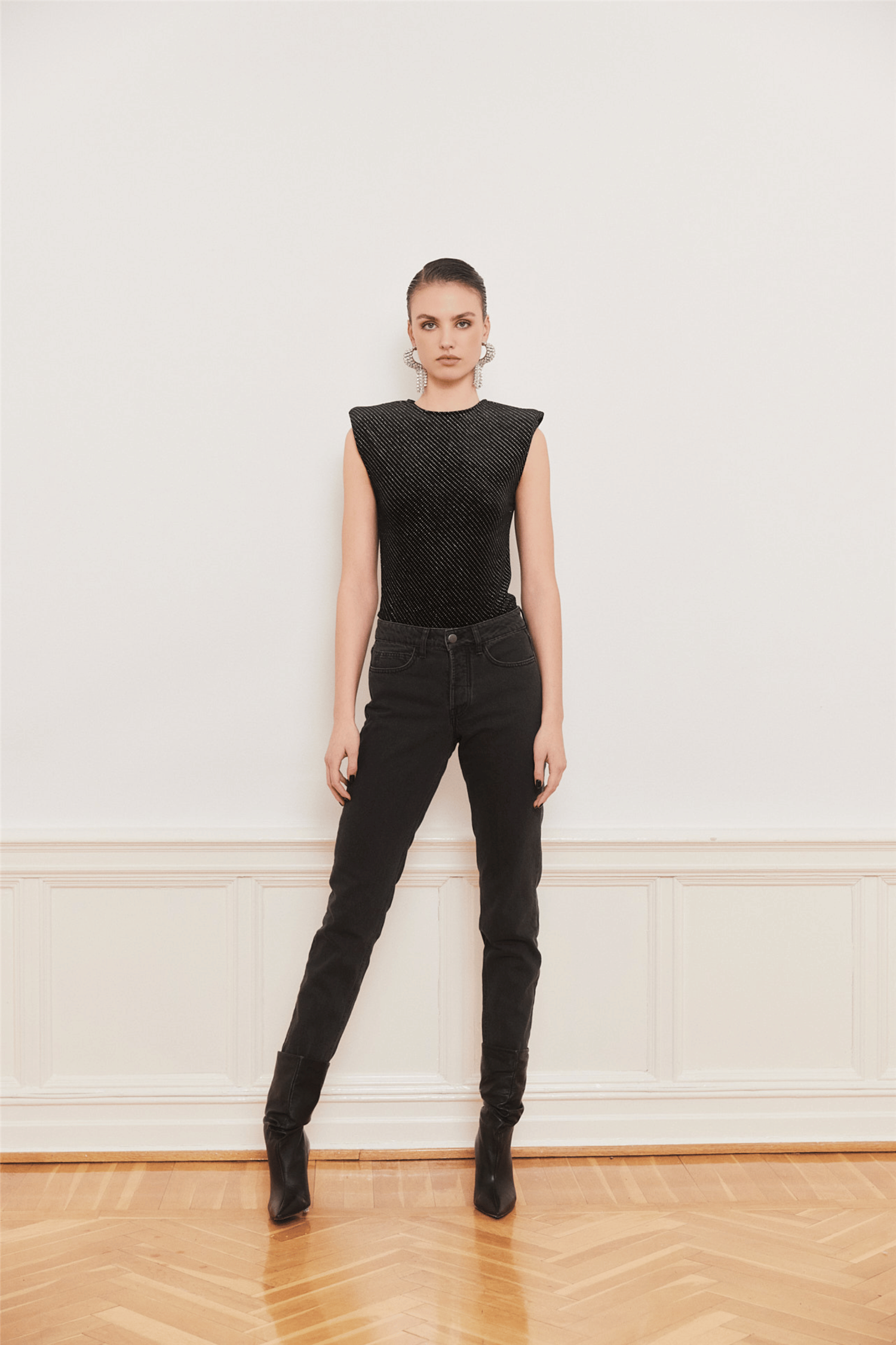 Midnight Body i sort er en glamorøs og moderne festbody som løfter ethvert antrekk. Den er laget i en eksklusiv velour- og paljettkvalitet med god stretch for en smigrende og komfortabel passform. Skulderputer gir en markert og elegant silhuett, mens den lekre glansen gjør den perfekt til fest, middag, julebord og kvelder du vil føle deg ekstra fab. En stilfull partybody som passer like godt til skinnbukser som til et høytlivsskjørt.
