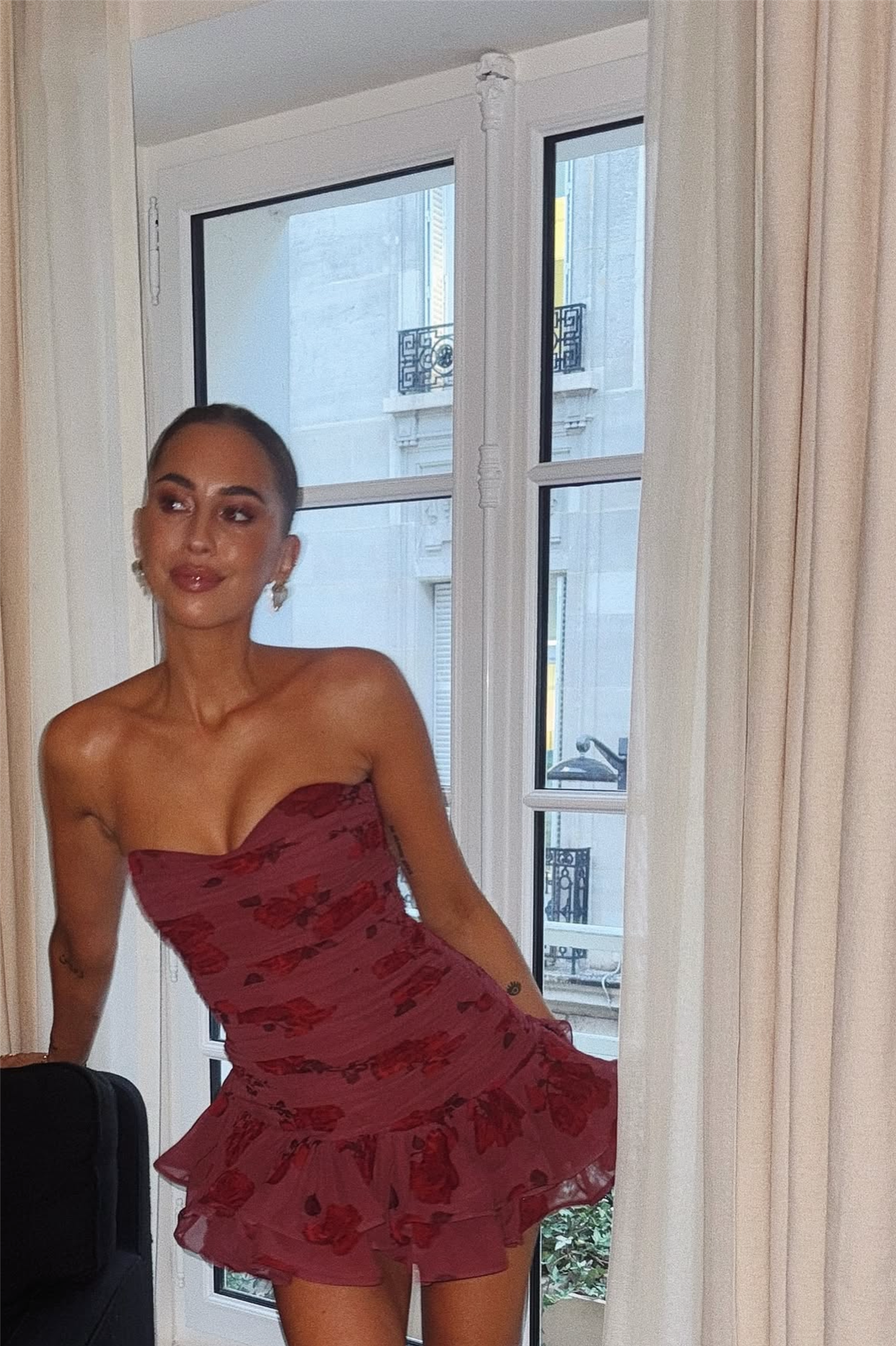 Barcelona Mini Dress fra ADOORE er en elegant og sofistikert kort kjole med feminine draperinger som fremhever silhuetten. Den har et figurnært liv med hjerteformet utringning og vakre legg som skaper tekstur og dybde. Skjørtet faller i en løsere, asymmetrisk volangfasong med markert søm som gir et flatterende og eksklusivt uttrykk.