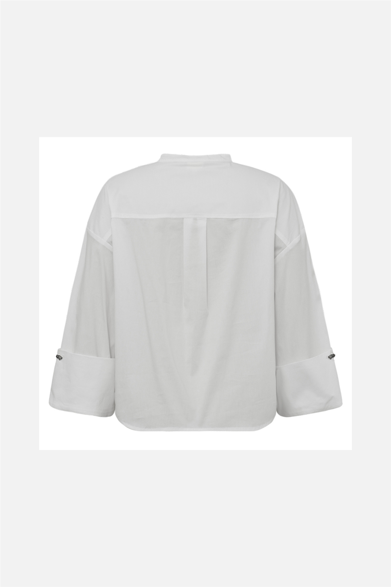 Elegant og tidløs hvit bluse fra danske Gossia, designet i en myk og behagelig bomullsblanding som gir et lekkert, lett strukturert uttrykk. RoselilleGO Jo Blouse har en liten ståkrage, 3/4 lange ermer med bred mansjett og knapp, og dekorative detaljer langs skuldrene som gir et moderne og eksklusivt preg. En skjortebluse som passer perfekt til både jobb og hverdag, og som enkelt kan styles med jeans, dressbukser eller skjørt for en chic og gjennomført look. En nydelig bomullsbluse du vil bruke igjen og igjen!