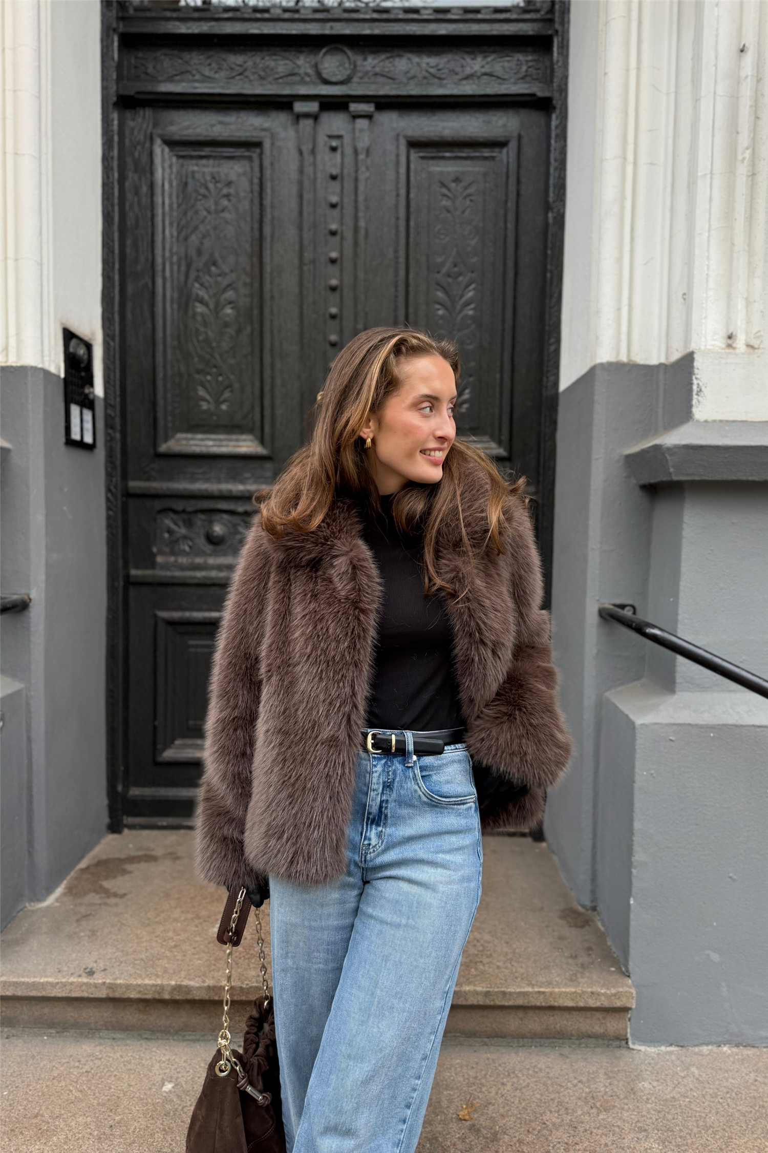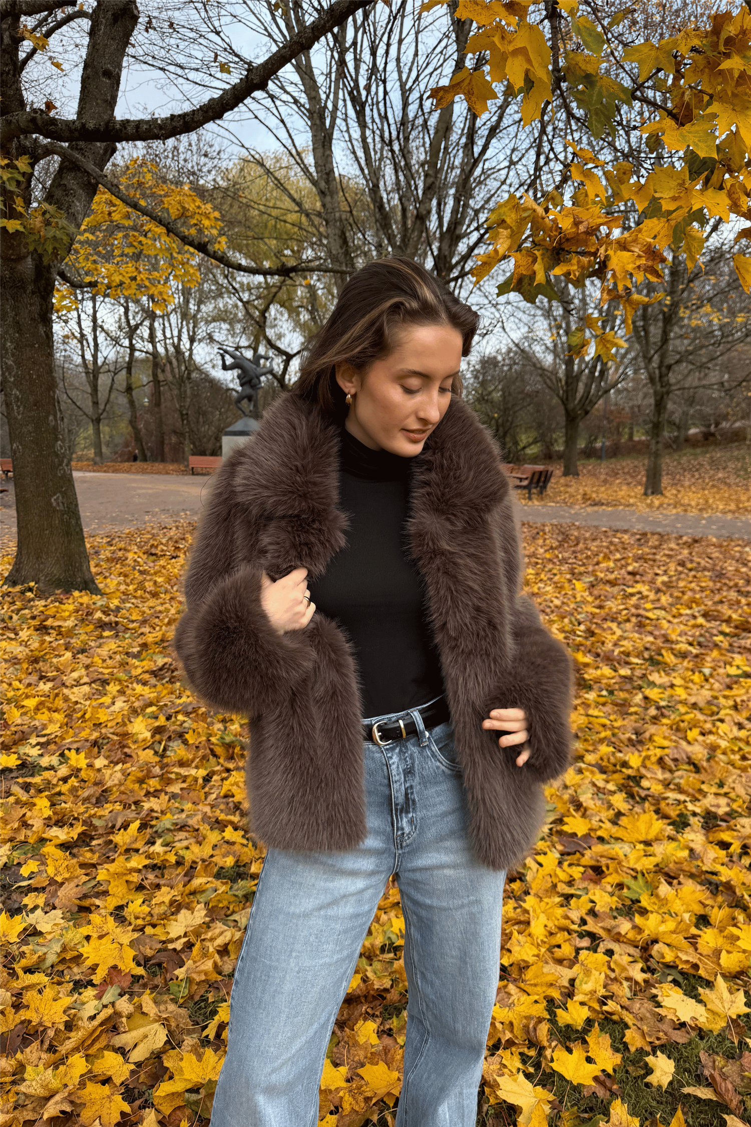 Veloce - vårt eget merke med den lekreste mykeste fuskepels. Normal i størrelsen, men om du ønsker å kunne bruke tykke gensere under så anbefaler vi å size opp.