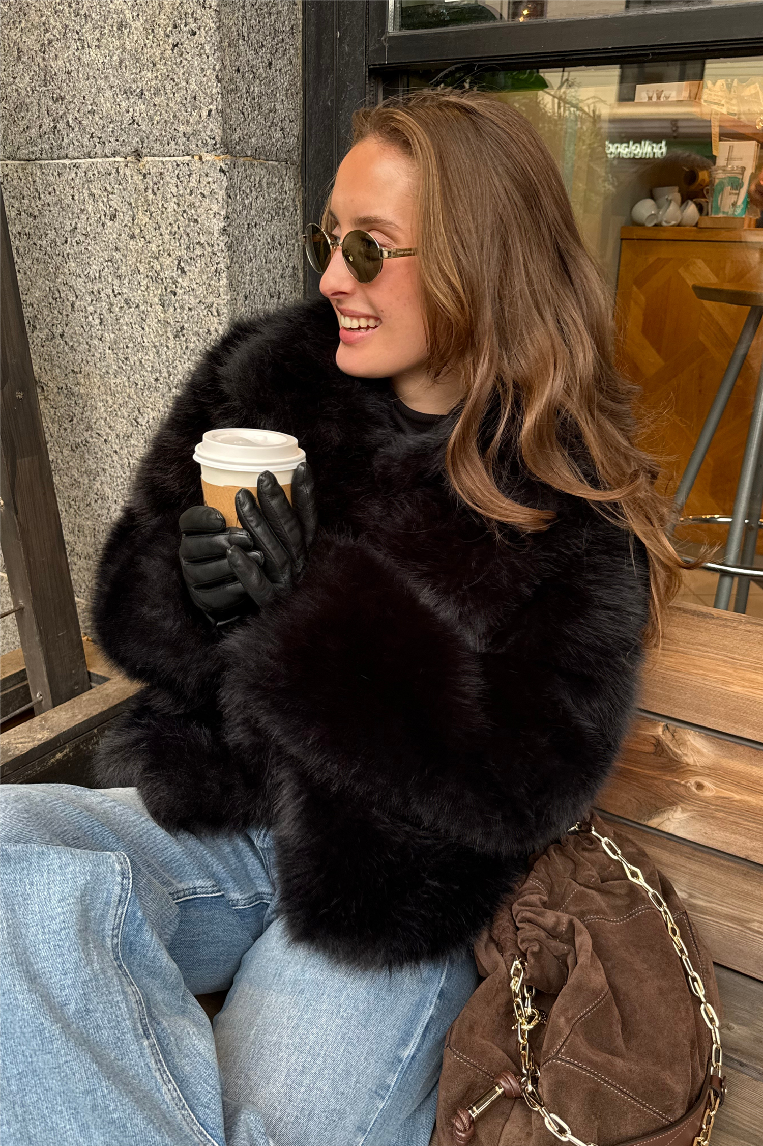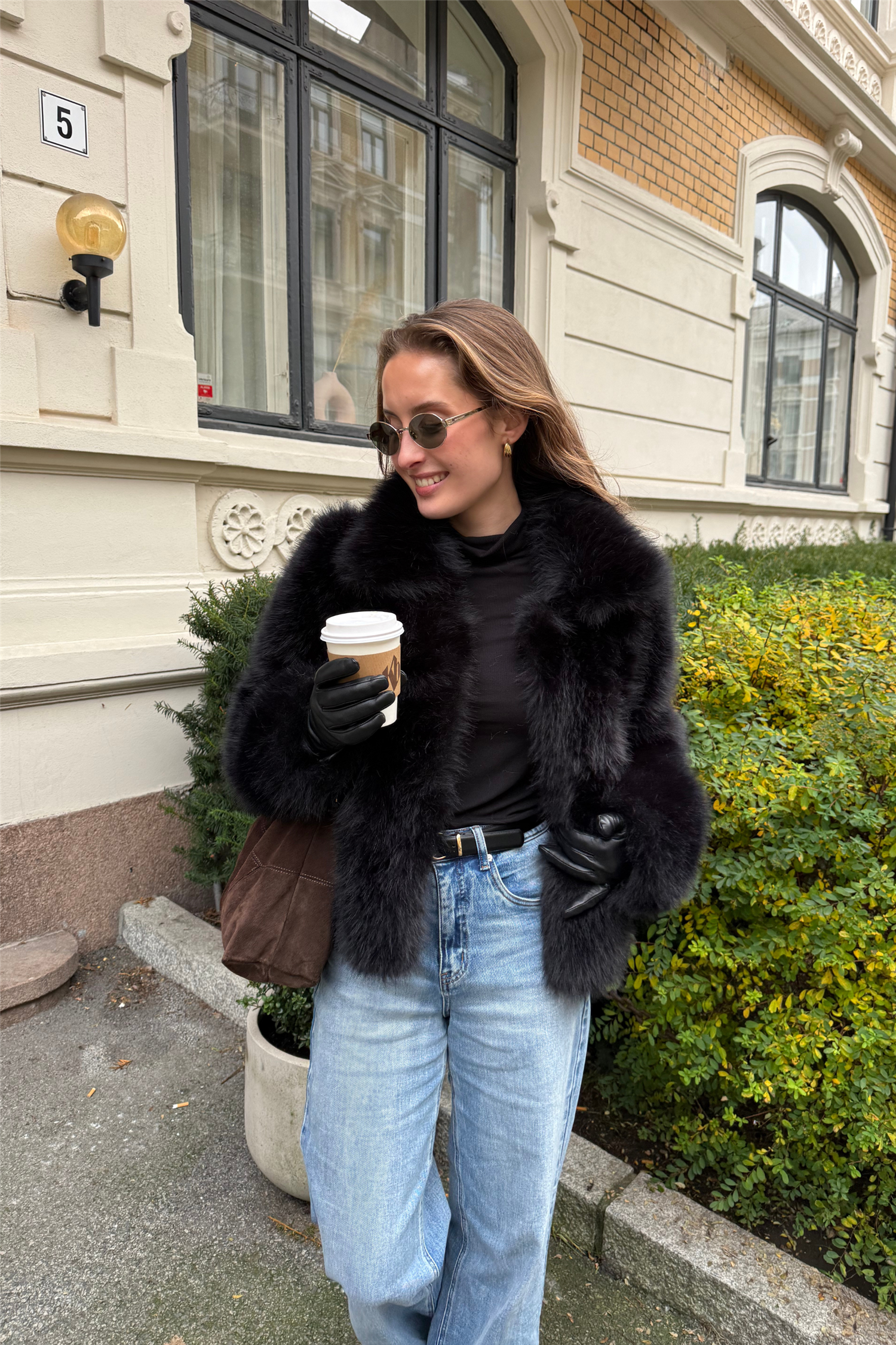 Veloce - vårt eget merke med den lekreste mykeste fuskepels. Normal i størrelsen, men om du ønsker å kunne bruke tykke gensere under så anbefaler vi å size opp.