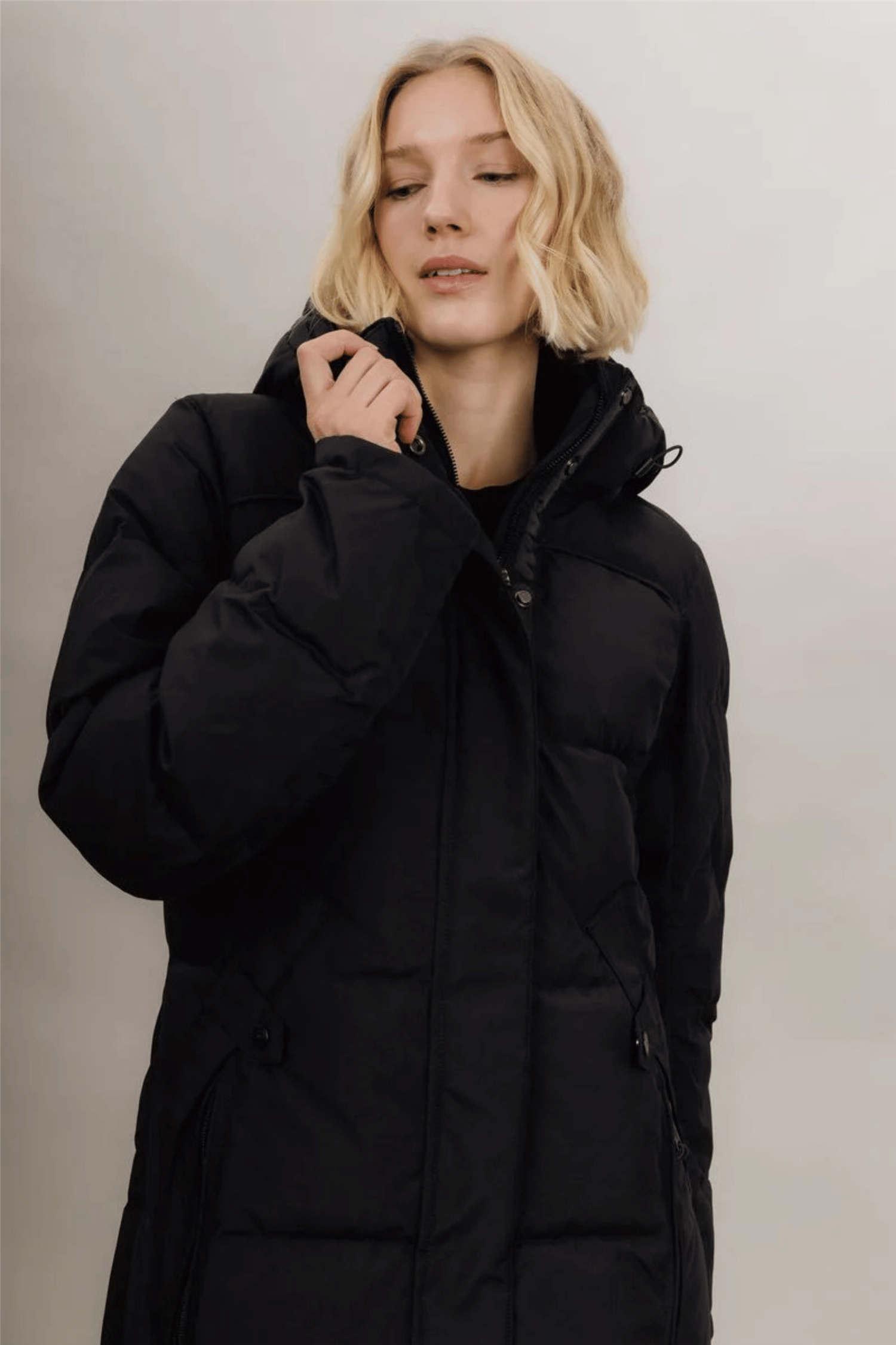 Laya Down Coat fra Urban Pioneers. Laya Down Coat er en funksjonell og varm kåpe laget av 100% resirkulert polyester og fylt med 80% dun og 20% fjær fra etisk kilde. Ytterstoffet har en vannsøyle på 10.000 mm og en pusteevne på 5.000 g/m2/24t, noe som gjør kåpen godt egnet til kalde dager med lett regn og snø. Det polstrede designet gir en tidløs silhuett, mens praktiske detaljer som avtakbar hette, glidelåser i sidene, justerbar kant og en kombinasjon av både inner- og ytterlommer gjør kåpen både komfortabel og allsidig. Med sin kombinasjon av varme, funksjonalitet og klassisk design er Laya Down Coat en pålitelig følgesvenn gjennom hele vintersesongen. Normal i størrelsen.