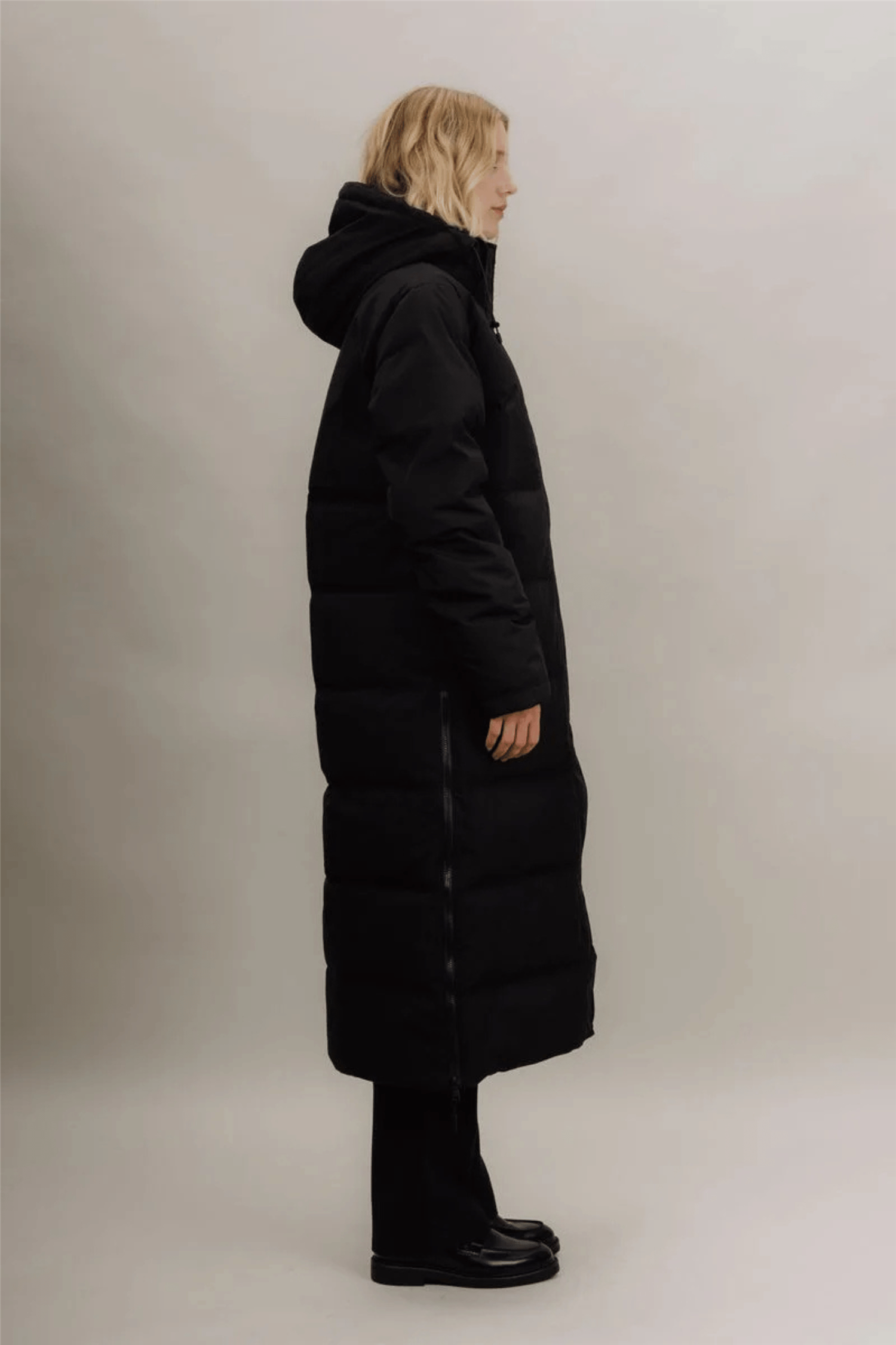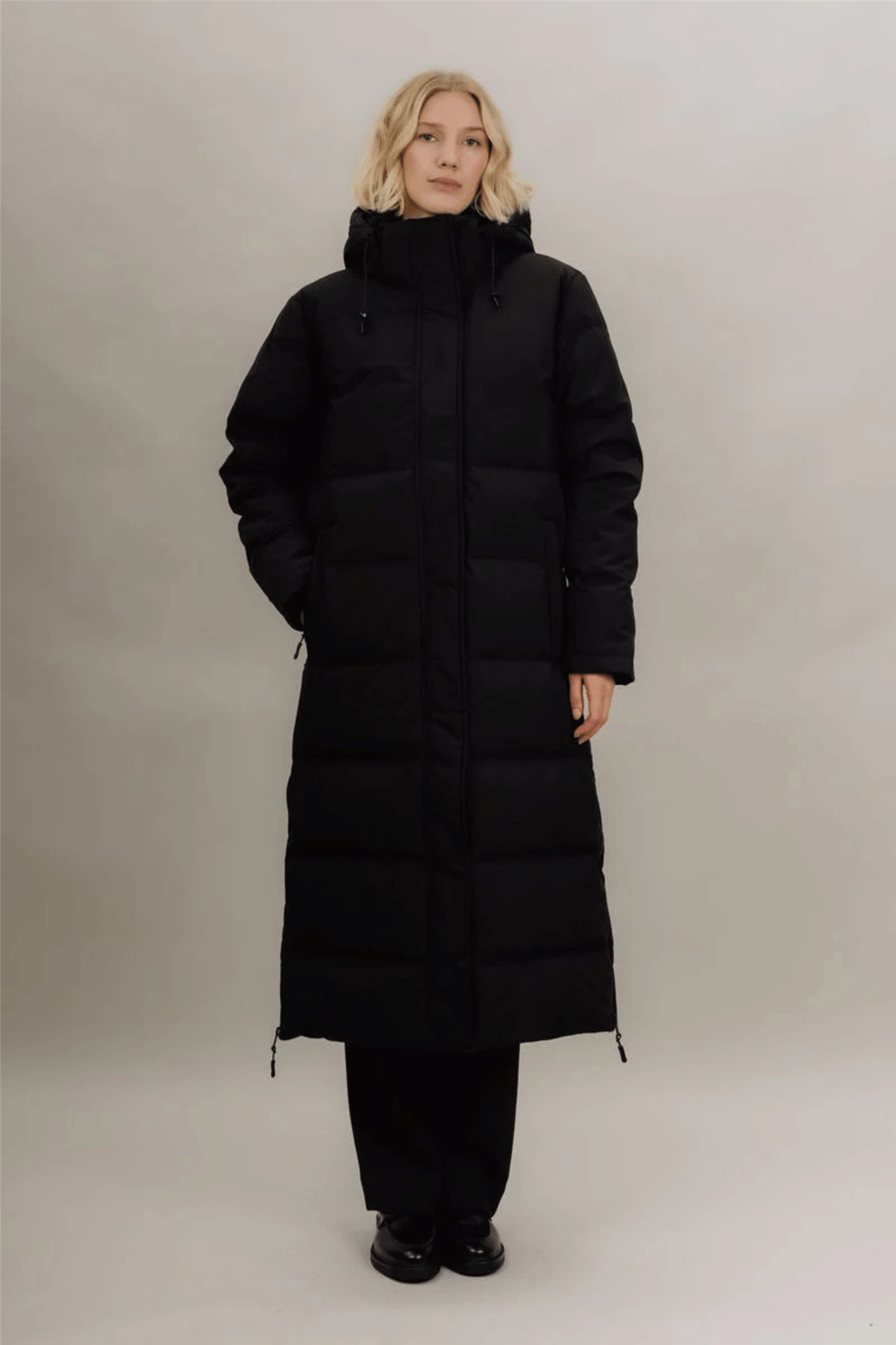 Ida Down Coat fra Urban Pioneers. Ida Down Coat er en teknisk vinterkåpe i rett modell som holder deg varm og tørr gjennom vinteren. Den har sveisede sømmer og vanntett materiale med 10.000 mm vannsøyle som beskytter mot vær og vind. Glidelåser i sidene som gir mulighet for lufting. Kåpen er fylt med 80% dun og 20% fjær fra etisk kilde, og det polstrede designet gir ekstra varme og komfort. Normal i størrelsen.
