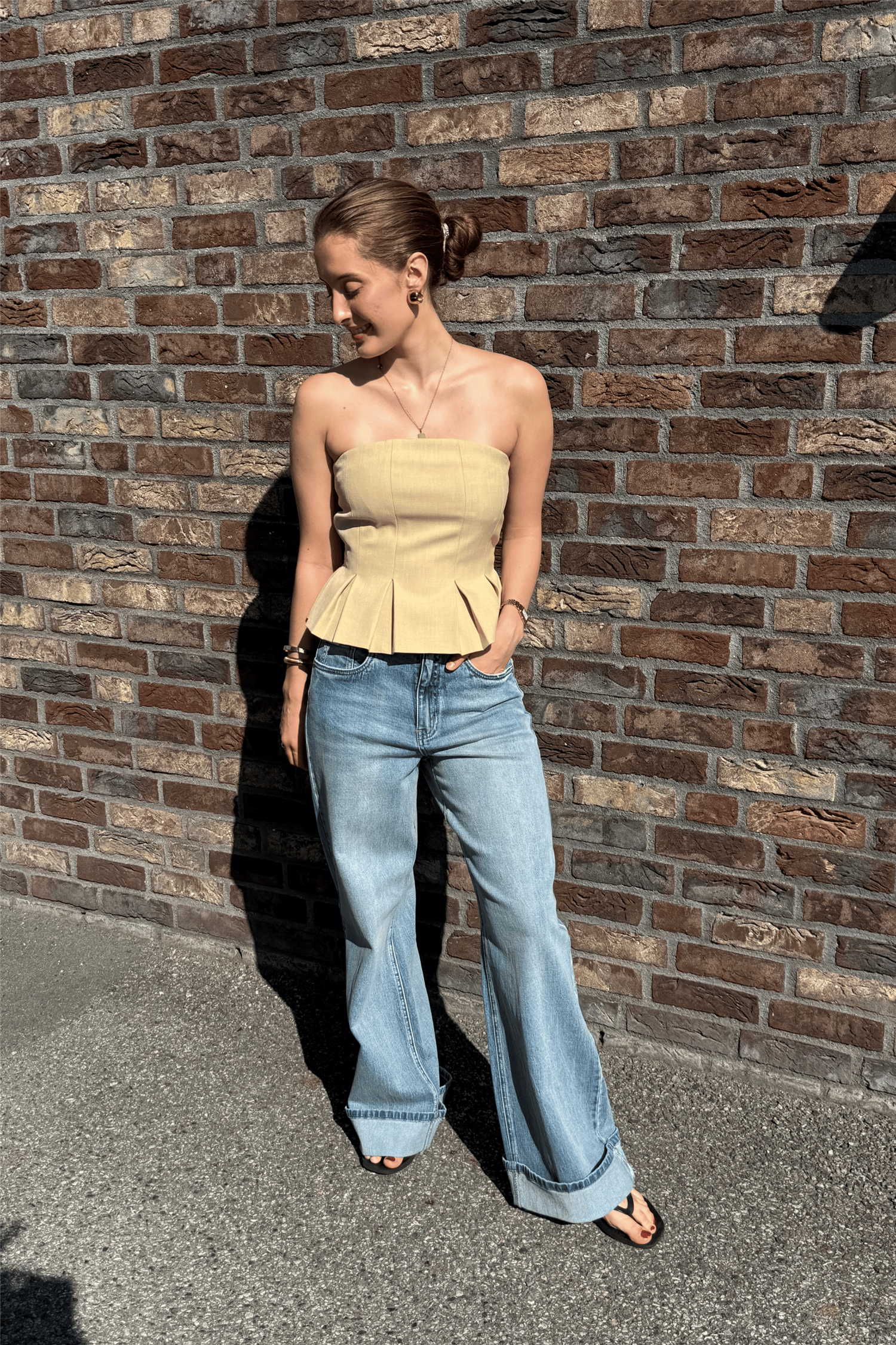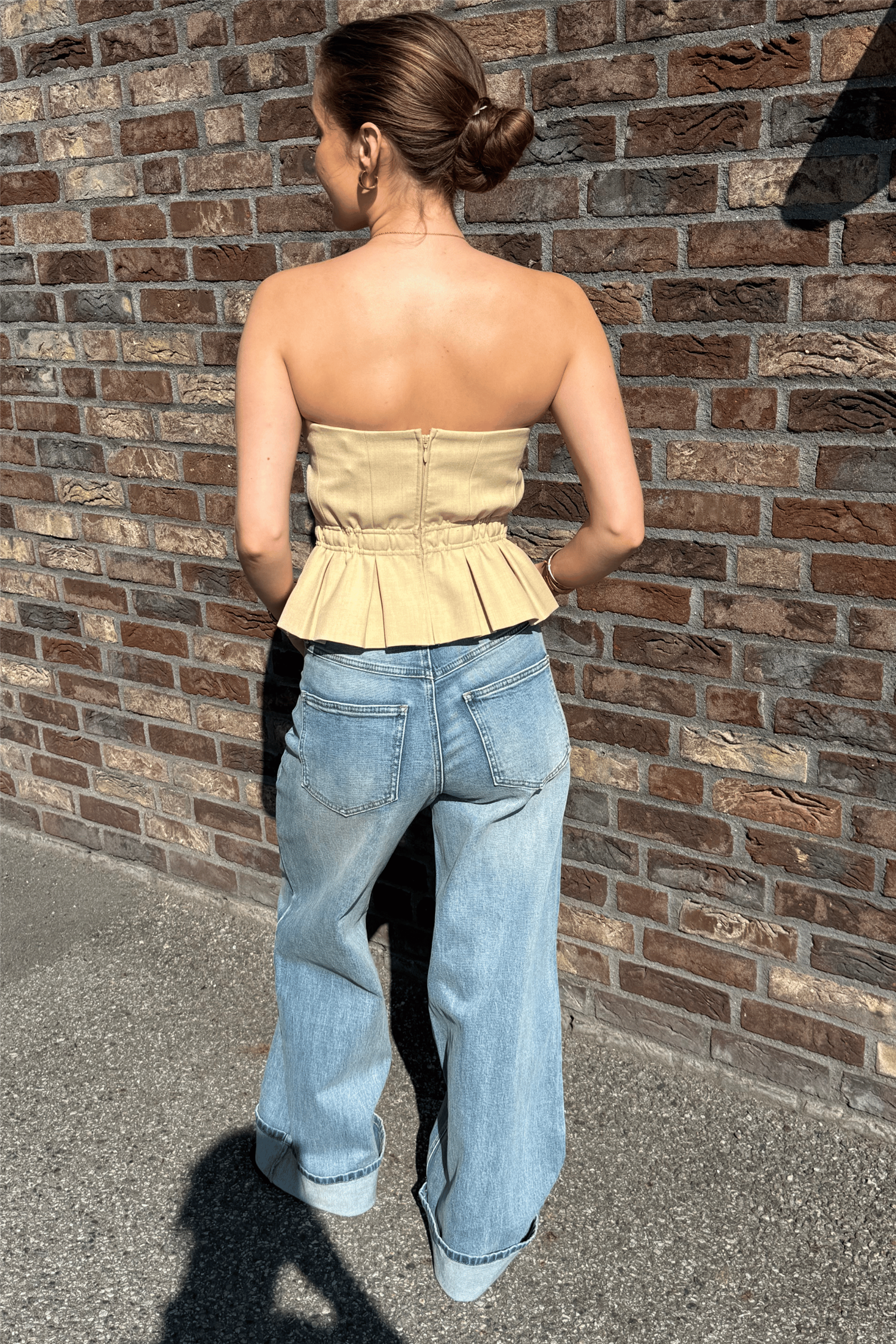 Gzstacy Corsage er en stilren og feminin, stroppløs topp med et moderne og sofistikert uttrykk. De markerte, vertikale leggene i peplumfasongen skaper en definert silhuett, mens den subtile peplumkanten gir et elegant fall. Den myke, glatte overflaten gir plagget et eksklusivt preg og gjør toppen perfekt både til festlige anledninger og mer gjennomførte antrekk.