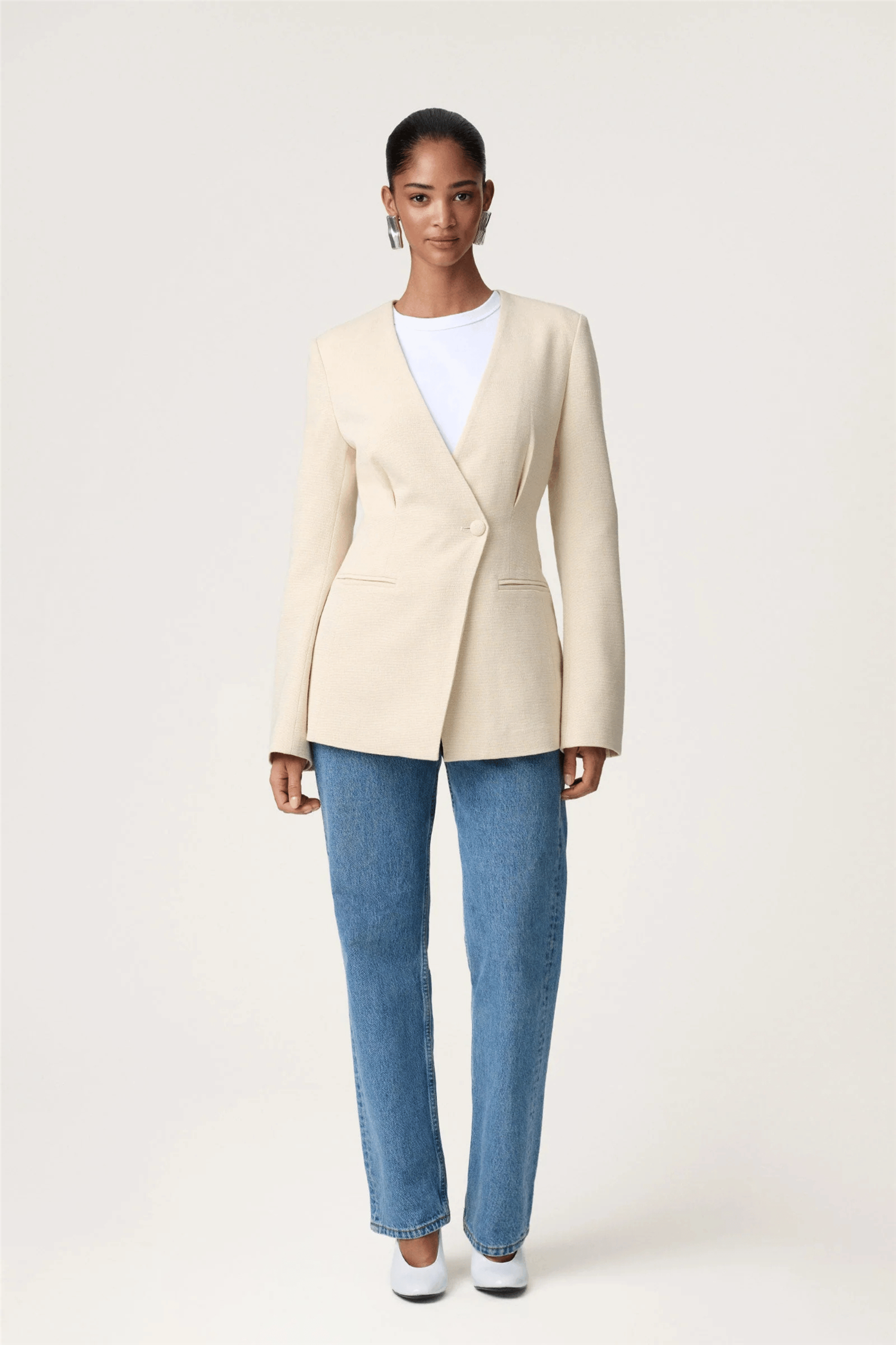 Alba blazer i butter beige.