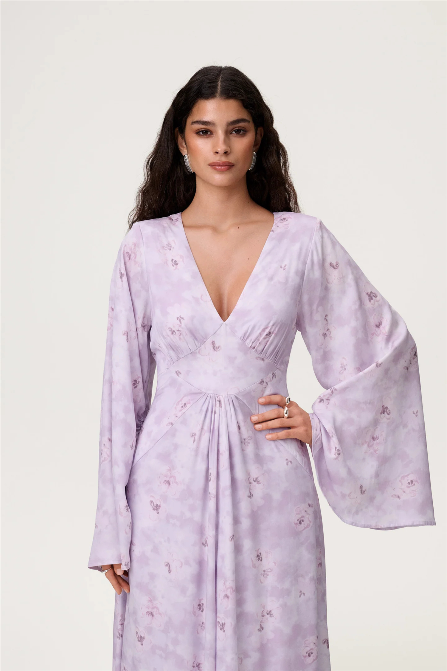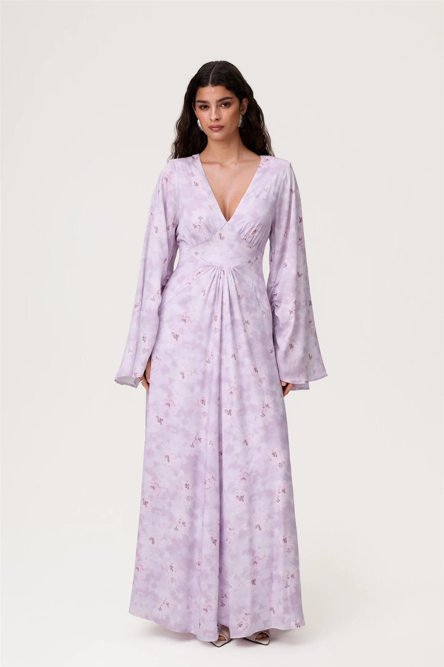 Barletta Dress er en elegant maxikjole i en myk lavendeltone som gir et delikat, men samtidig iøynefallende uttrykk. De myke rynkene og den V-formede sømmen under bysten fremhever silhuetten på en flatterende måte, mens den subtile skulderputen og den voluminøse, rynkede ermen skaper et spennende og asymmetrisk preg. Barletta Dress faller vakkert og beveger seg lett når du går, og er et nydelig valg til bryllup, sommerfest eller andre anledninger hvor du vil føle deg ekstra gjennomført. En sofistikert kjole fra Adoore som kombinerer myk femininitet med moderne detaljer.