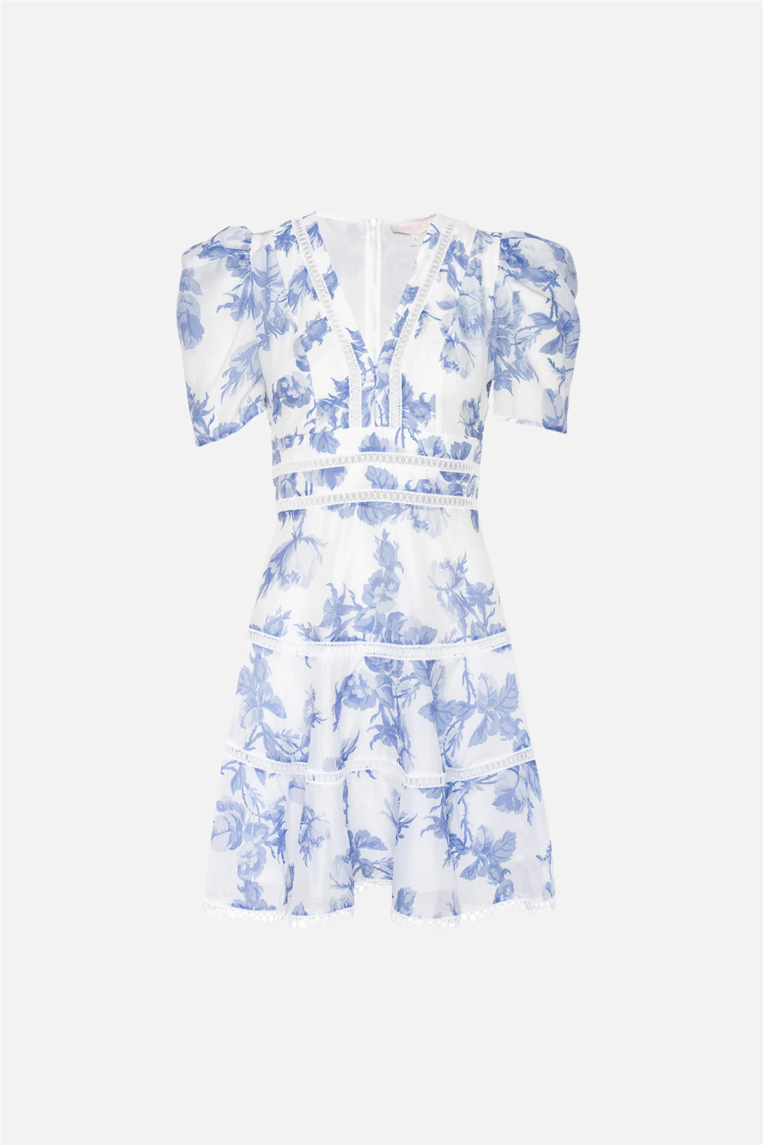 Emie Mini Dress fra Love Lolina er en sjarmerende minikjole med en crisp hvit base og et mykt blått blomsterprint som gir et friskt og romantisk uttrykk. Kjolen har en flatterende V-utringning, markert midje og delikate blondedetaljer som fremhever fasongen og de lagdelte partiene i skjørtet. Puffede ermer med skulderputer gir en elegant silhuett, mens det flowy skjørtet skaper leken bevegelse. Med skjult glidelås i ryggen og en figurnær passform sitter Emie Mini Dress fra Love Lolina nydelig på. Emie Mini Dress fra Love Lolina er den perfekte sommerkjolen til hagefester, sommerdager og spesielle anledninger.