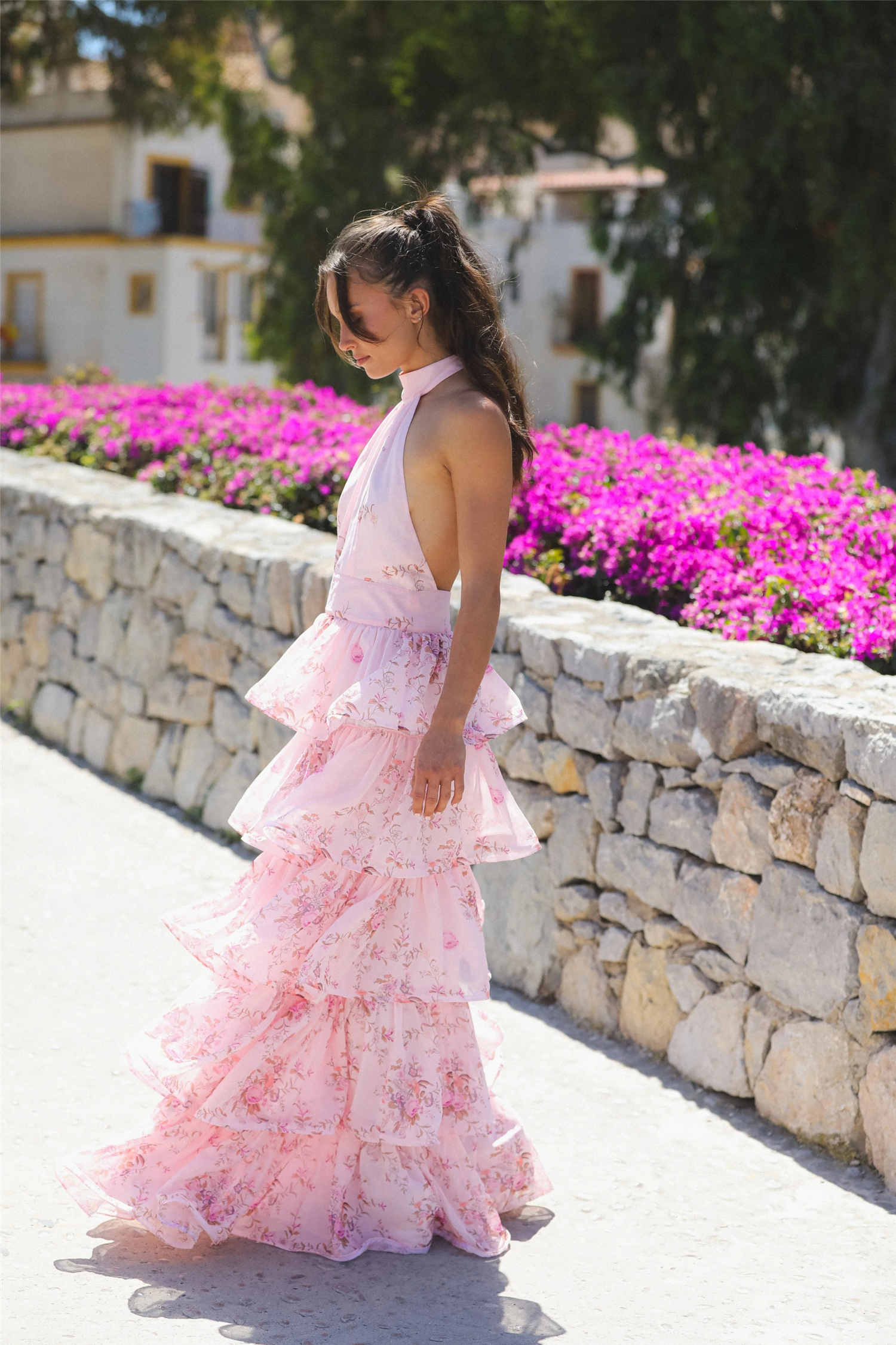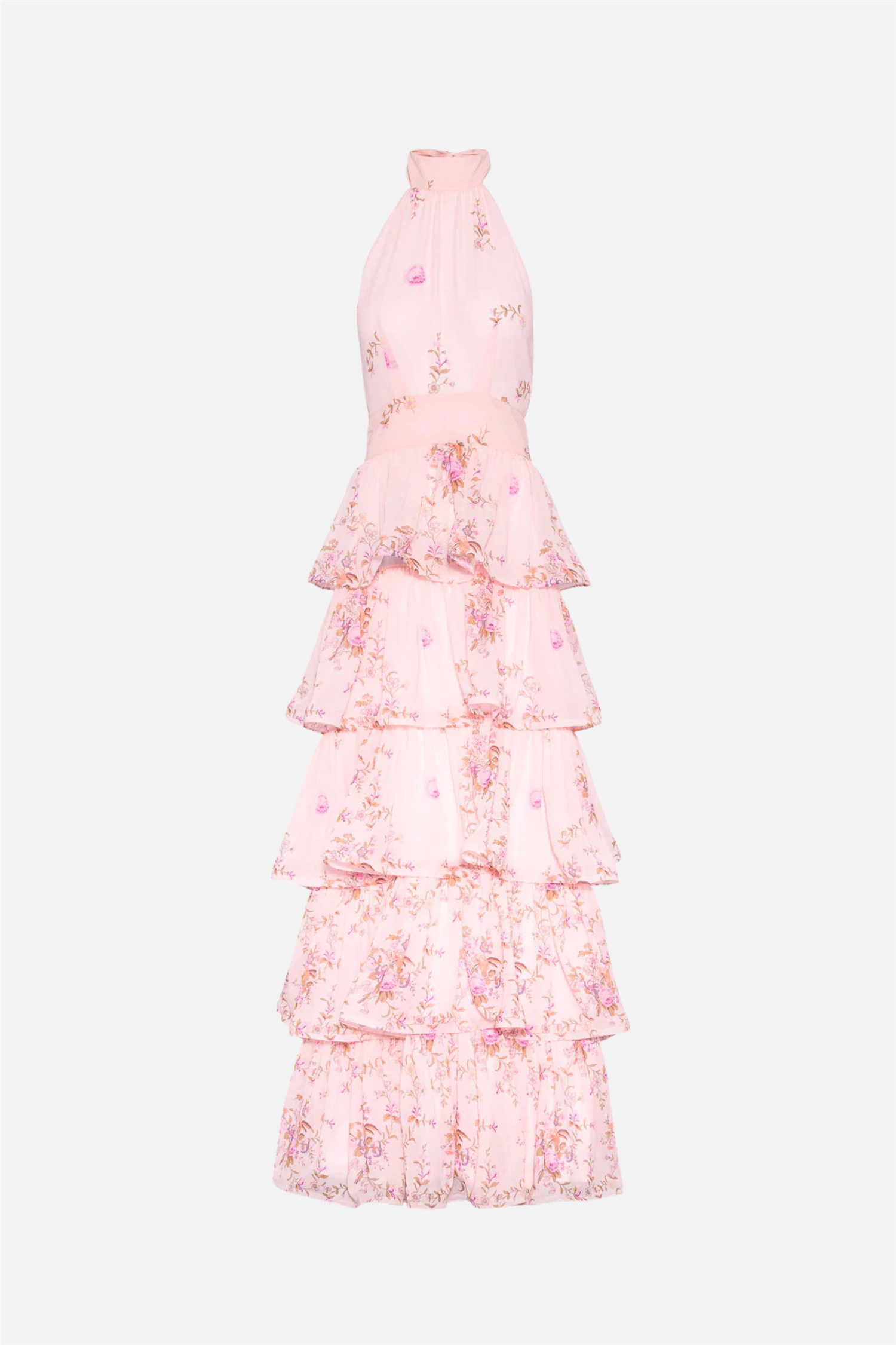 Angeline Maxi Dress fra Love Lolina er en drømmende halterneck maxikjole i myk blush rosa, dekorert med delikat blomsterbroderi og lekre lagdelte volanger. Kjolen har en åpen rygg, definert midje og en feminin silhuett som fremhever figuren på en elegant måte. Med skjult glidelås bak og en vakker sløyfedetalj i ryggen sitter Angeline Maxi Dress fra Love Lolina perfekt og er normal i størrelsen. Denne romantiske maxikjolen er det ultimate valget til bryllup, sommerfester og andre spesielle anledninger – en ekte statement-kjole for sesongens fineste øyeblikk.